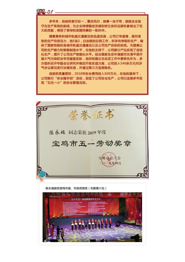 公司職工獲寶雞市“五一勞動(dòng)獎(jiǎng)?wù)隆奔啊皩氹u工匠”榮譽(yù)稱號(hào)