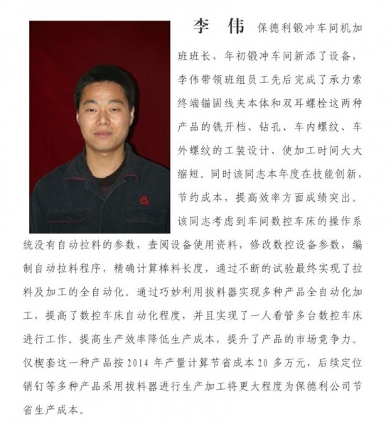 2014年度公司“十佳”員工簡(jiǎn)要事跡