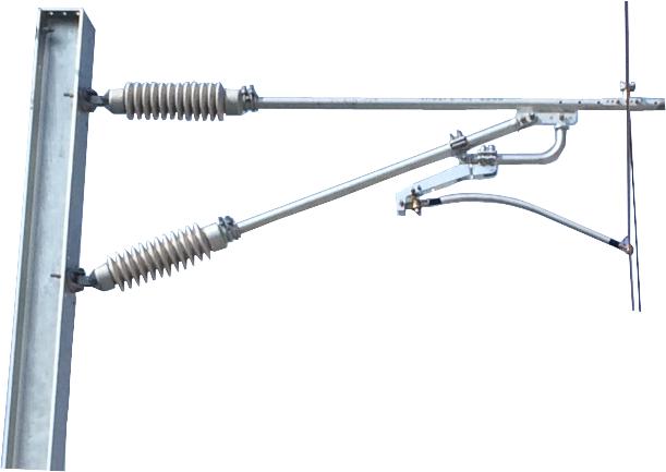 裝置組成: 平腕臂、 斜腕臂、 組合承力索座、 支撐連接器、 鋁合金支撐等組成。