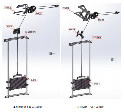 裝置類型: 棘輪下錨補償裝置包括: 棘輪補償裝置、 隧內(nèi)棘輪下錨底座、 轉(zhuǎn)向滑輪、 隧內(nèi)墜砣限制架、 墜砣框架等。
