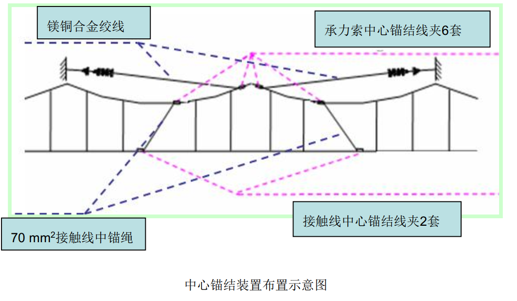 中心錨結(jié)裝置用于接觸懸掛系統(tǒng)中防止整個(gè)錨段向一側(cè)竄動(dòng)或者接觸懸掛斷線時(shí)縮小事故范圍。